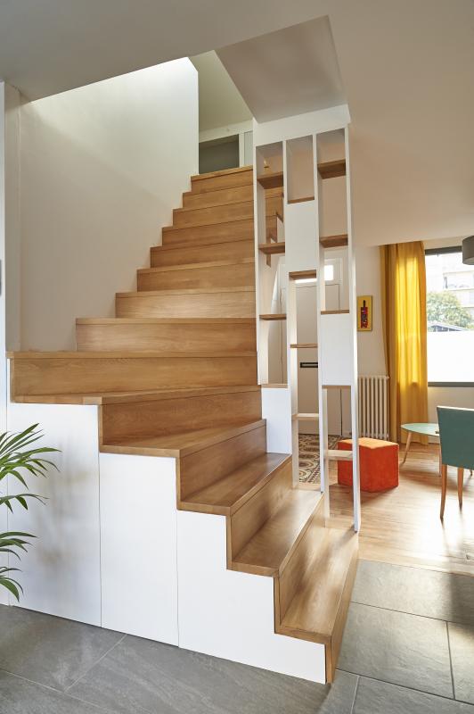 Le projet concerne le décloisonnement intégral du rez de chaussée de l’échoppe afin d’obtenir un grand espace lumineux comprenant salon, salle à manger et cuisine. Un espace bureau ainsi qu’une buanderie et des toilettes ont été aménagés.